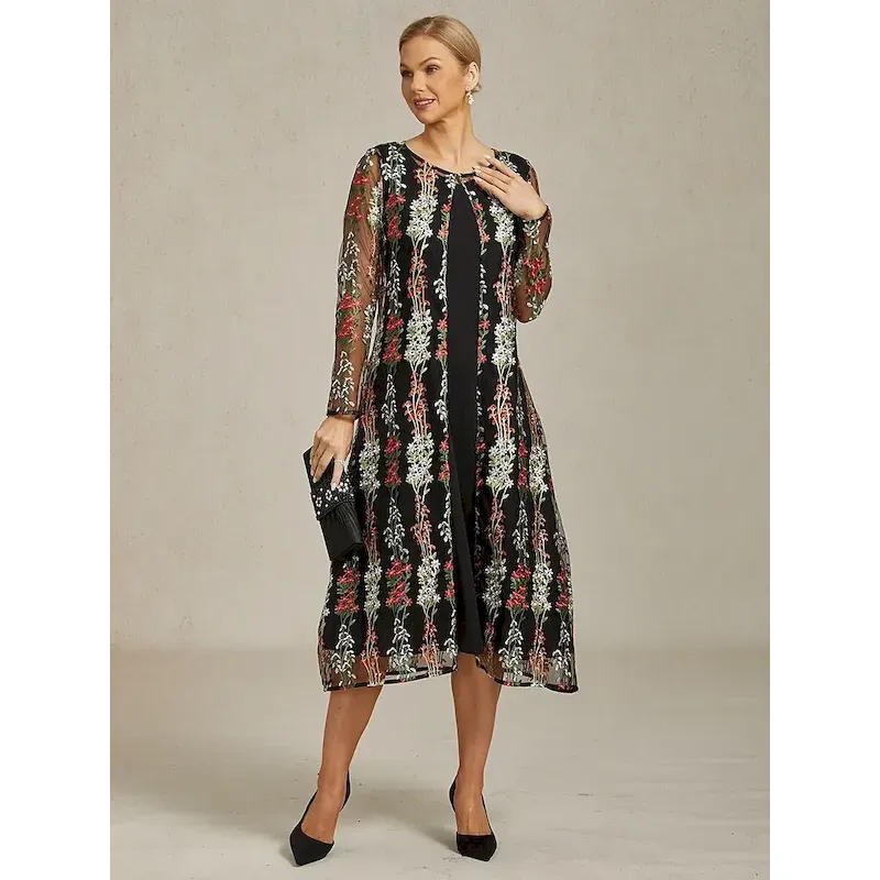 Women’s Jacket Coat Blazer Lace Embroidered Elegant Floral Formal Anniversary Wedding Guest Daily Open Front Long Crewneck Regular Fit Long Sleeve Outerwear Black Spring Fall