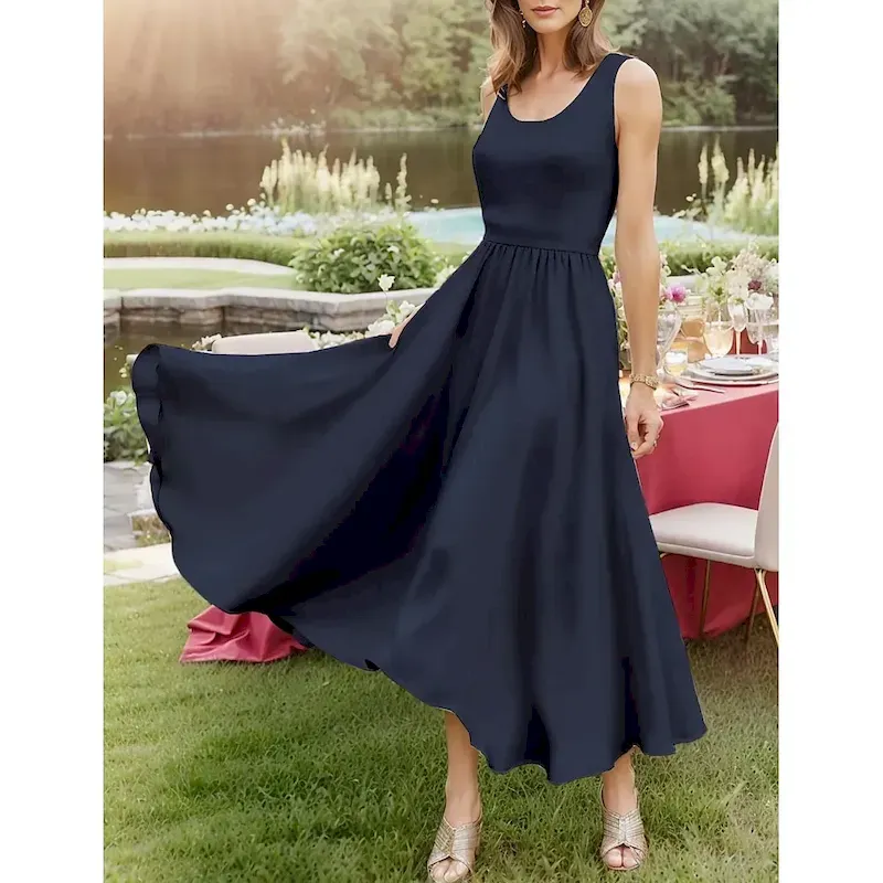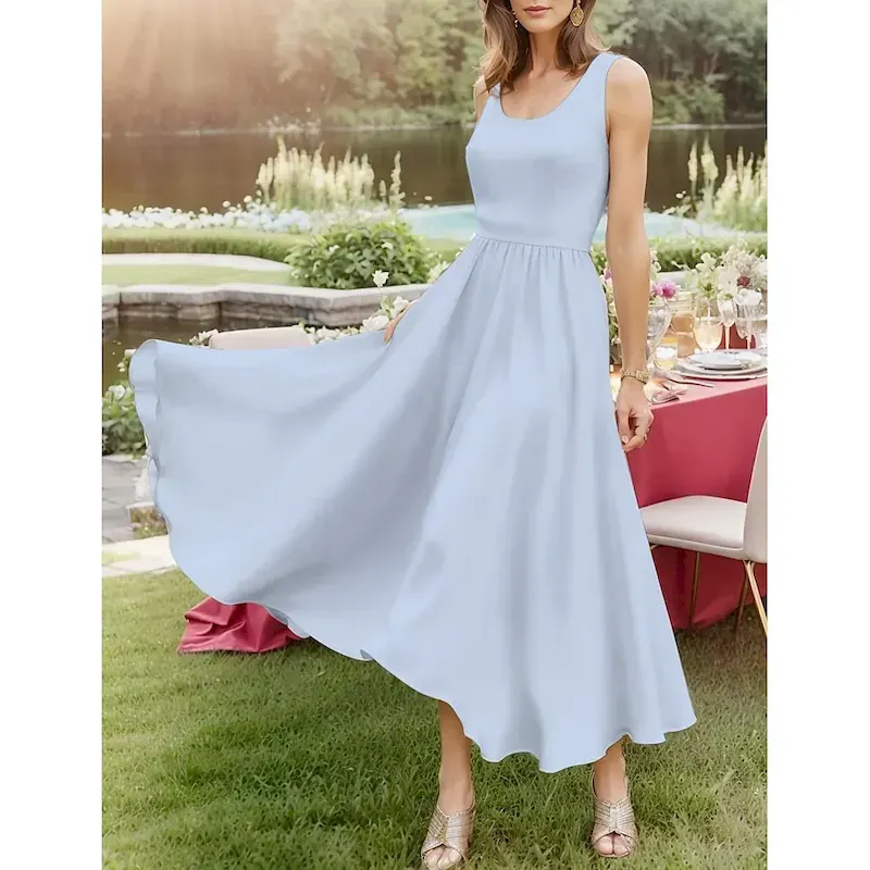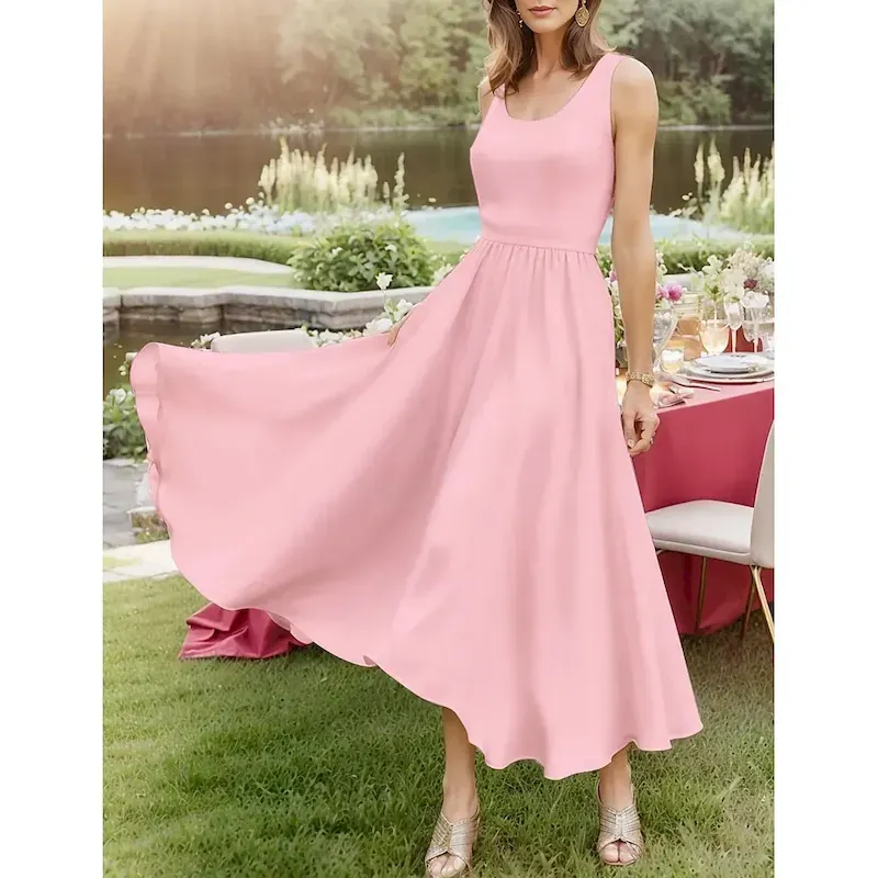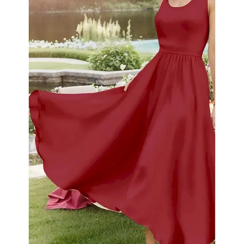 Women’s Midi Dress Sundress A Line Dress Off The Shoulder Dress Vacation Casual Beach Outdoor Party Going out Regular Fit Solid Color Graphic Plain Sleeveless U Neck White Pink Wine Navy Blue Summer