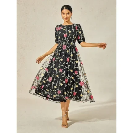 – Perfect for any party or special occasion- Features a stylish print design- Flattering U-neckline adds a touch of elegance