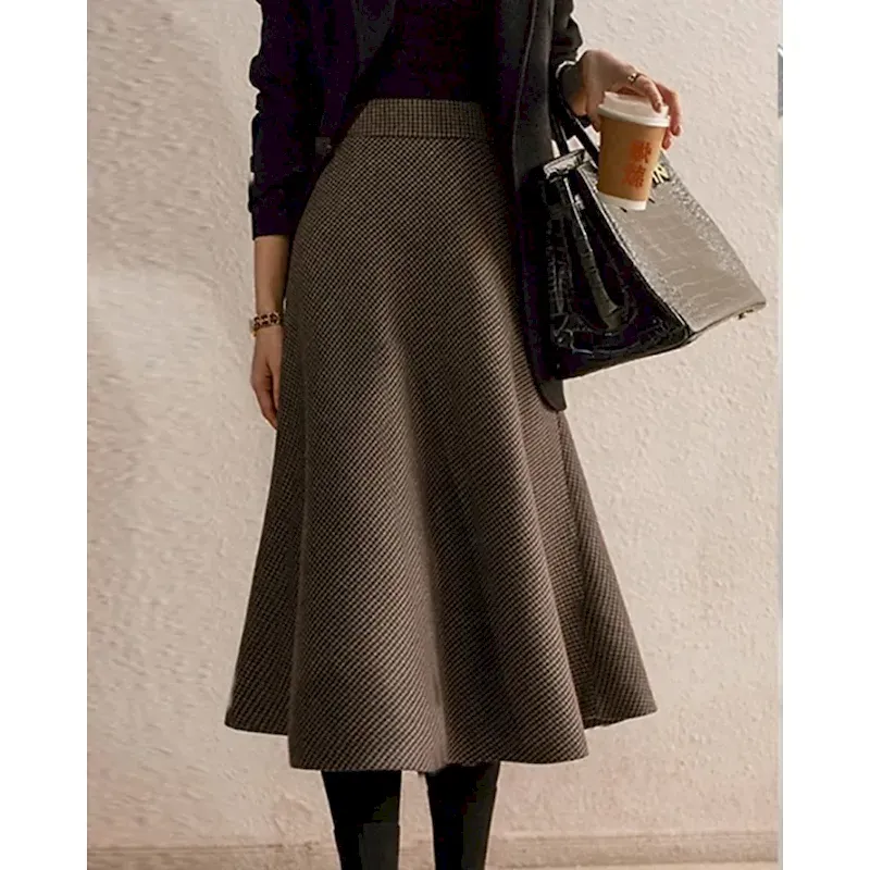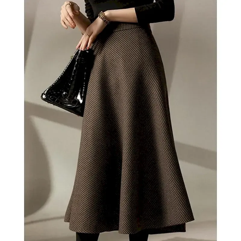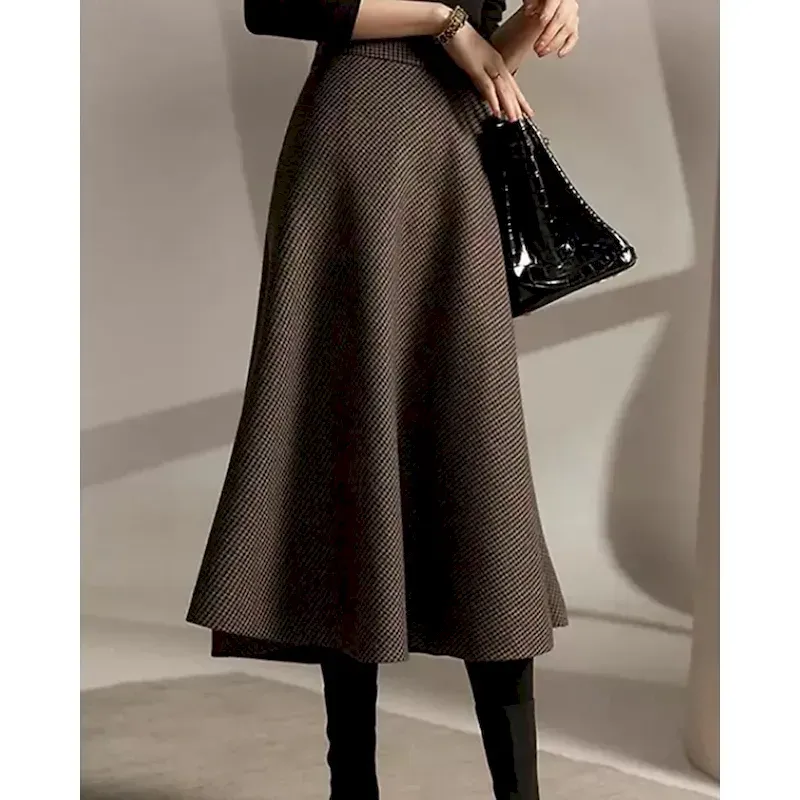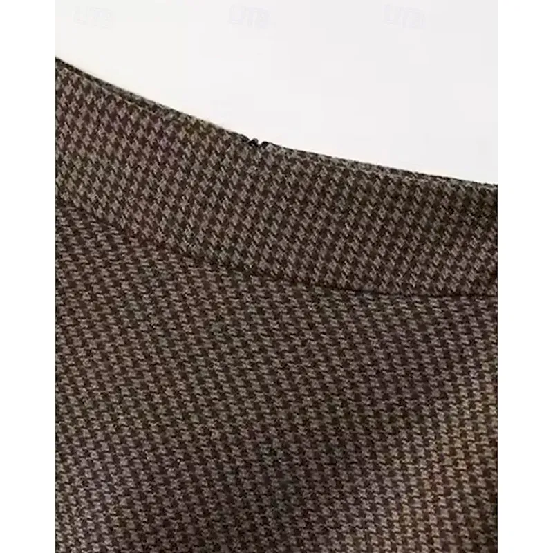 Women’s Skirt A Line Fashion Casual Midi High Waist Skirts Houndstooth Ruched Inelastic Micro-elastic Street Daily Coffee Fall Polyester